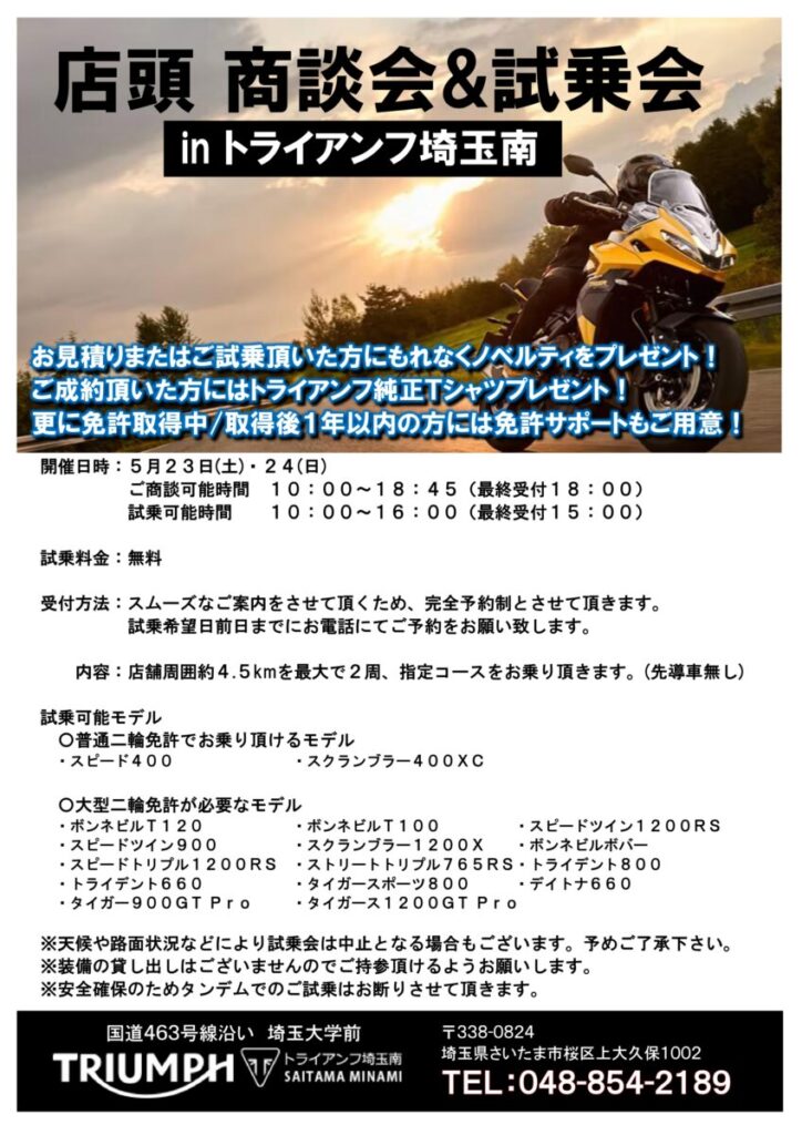【トライアンフ埼玉南店頭試乗/商談会】開催