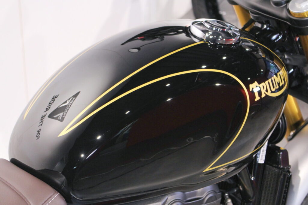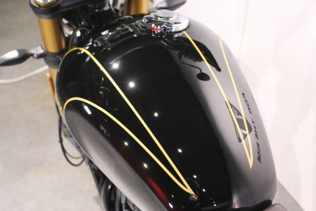 投稿公開日:2025年11月29日 投稿カテゴリー:News / カスタムコンプリート トライアンフ埼玉南オリジナルカスタムペイント Scrambler400X GoldLine ブラックベースにゴールドのラインをあしらった特別ペイント車。 落ち着いた雰囲気に高級感をプラスしました。 コンプリート車両本体価格 ¥842000(税込) ※諸経費別途 店頭展示中です。